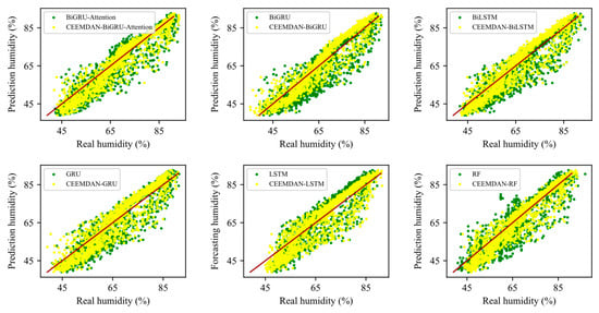 (1) Due to the influence of various factors, the RH data collected by the sensor will inevitably produce noise, which will cause random interference for model training and prediction. After data denoising, the MAE of BiGRU-Attention, BiGRU, and BiLSTM future 3 steps prediction was reduced by 13.8%, 13.2%, and 5.2%, respectively. This indicates that the data denoising method based on CEEMDAN and permutation entropy effectively extracts irregular noise from RH, making it easier for the model to learn useful information while suppressing overfitting.