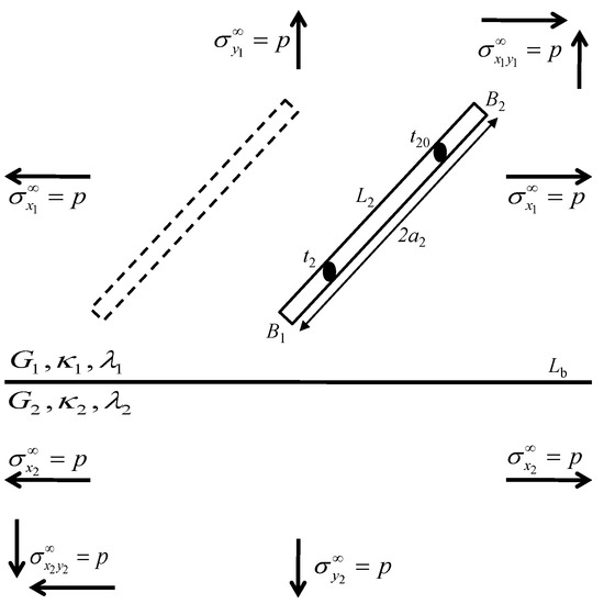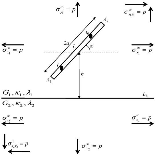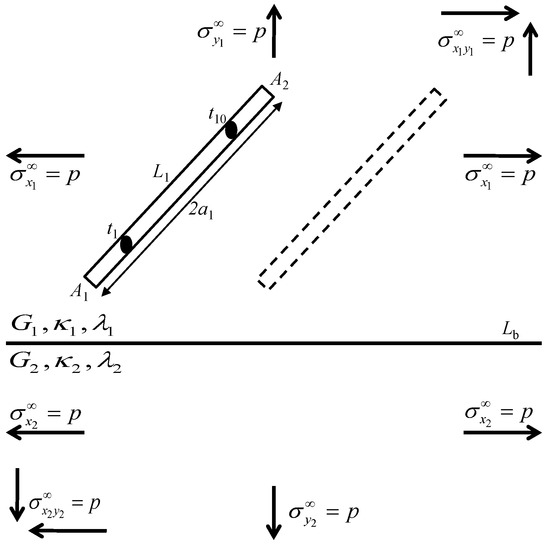 - Isida, M.; Noguchi, H. Arbitrary array of cracks in bonded half planes subjected to various loadings. Eng. Fract. Mech. 1993, 46, 365–380. [Google Scholar] [CrossRef]
