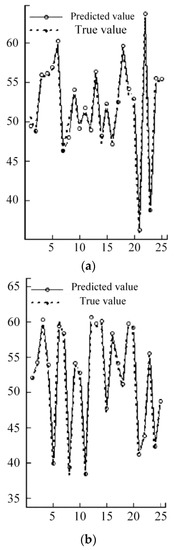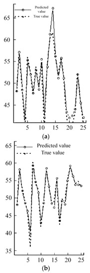 Figure 12a,b and Table 8 show the learning results and errors of the LSTM model for the training and testing sets, respectively. The training set is used to establish the model and learn its own parameters, while the testing set evaluates the generalization ability of the model. As seen in Figure 12, both the training and testing show good performance. Combined with the results in Table 8, the learning error on the testing set is generally small, indicating that the LSTM model constructed in this paper has good generalizability. It also suggests that the selected macroeconomic indexes can serve as effective early warning indexes for financial hazards.