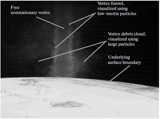 - Gall, R.L. Internal dynamics of tornado-like vortices. J. Atmos. Sci. 1982, 39, 2721–2736. [Google Scholar] [CrossRef]