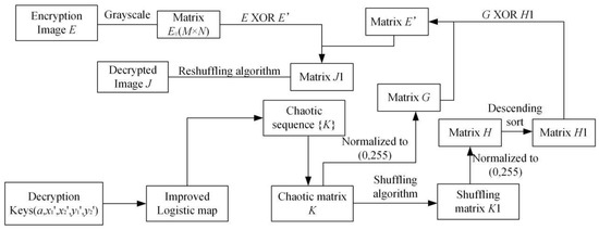 Figure 9 shows the procedure of this encryption algorithm. Similarly, the decryption process can be explained as follows, and the flowchart of the decryption procedure is presented in Figure 10.