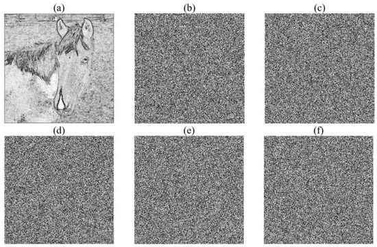 where n is the total number of symbols, and m(xi) is the probability of symbol xi. Generally, the G(x) of an ideal encrypted image will approach a value of 8. The G(x) values of our encryption algorithm and some other methods are shown in Table 4. From Table 4, it can be seen that the information entropy of the encrypted Horse image is 7.9970, which is close to the ideal value of 8, and is not much different from the other algorithms. This result implies that our encryption algorithm can effectively make the original image random-like.