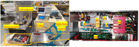 Currently, induction heating (IH) technology is becoming a competitive thermal energy source to minimize the carbon footprint and offer efficient energy management for domestic, commercial, or industrial consumers [1,2]. The IH system has several merits [3]: (i) high efficiency compared to gas or other electric heating because the cookware itself converts the electrical power into heat [4]; (ii) zero carbon emissions with thermal energy production [5]; (iii) fast and controlled heating by controlling the amount of electrical power [6]; (iv) better user safety due to contactless cookware operation [7]; and (v) a compact size. On the other hand, the IH system is vulnerable to several challenges, such as (i) the area of the coil covered by the cookware [8], (ii) user misbehavior that can have a significant impact on gap variations between the cookware and coil [9], (iii) the selection of the proper power input concerning the size of the cookware or the amount of food being cooked, and (iv) the bad environment (humidity and temperature) that causes fast degradation and the failure of IH system components [10].