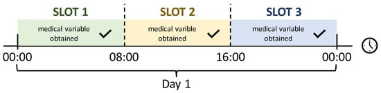 - Slot 1: value of the medical variable obtained between 00:00 and 08:00 h.