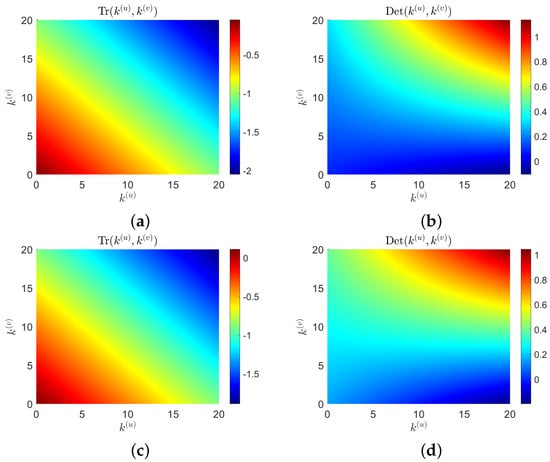 Therefore, we have the following discussion: if and , Turing instability will occur. When is stable in the non-diffusion model (1), obviously, the condition of holds because of and . Consequently, Turing instability needs to be established, that is to say,