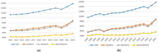 The impact of gross domestic product (GDP) elements (calculated by the expenditure method) on the economic growth of a country or group of countries has been studied by numerous authors. Different results were identified depending on the interval studied, the level of development of the states and the methods used. Investment and international trade are essential elements for the stable operation and long-term growth of the national economy. At the same time, due to the important role it plays in the process of economic development and social progress, many researchers have created different forecasting models to provide effective support to governments in the formulation of economic policies.