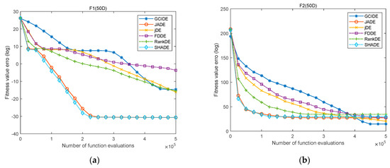 - In order to make full use of the fitness value of individuals to adjust their search capability, under the framework of “DE/current-to-guiding/1”, a new mutation operator named “DE/current-to-pbest_id/1” is first proposed. In the new operator, each individual’s fitness value is employed to determine the chosen range of its associated guider among the whole population, i.e., decide the parameter p in the “DE/current-to-pbest/1” for each target individual. Compared to the existing related methods [9,10,11,12,13,14,15,16,17,18,19,20,21,22,23,24,25,26], the proposed operator adaptively assigns a suitable guider for each individual to adjust its search capability based on its special characteristic. Thus, this new operator can effectively satisfy the search requirements of different individuals, thus enhancing the search effectiveness of the algorithm.