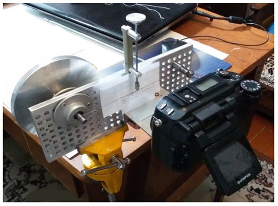 The experimental facility for investigating the transverse displacements of a stretched string under the action of a transverse local force is shown in Figure 4. The equipment provides a constant controlled string tension. During the test, the transverse displacements of the string are measured with an accuracy of 0.1 mm using an optical system.