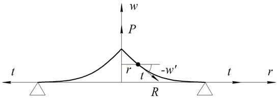 A circular membrane loaded with in-plane forces and a concentrated force applied at the membrane center (Figure 6) is a classical singular problem of mathematical physics [].