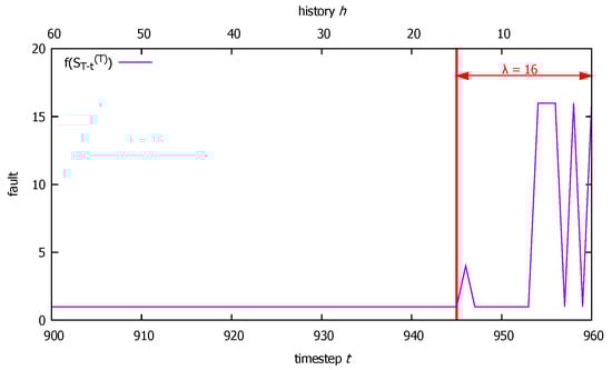 where K is the set of all possible inputs of size w obtainable from the T time steps of long sequences from D. Using the sampling stride of 1 gives possible inputs. However, if one has knowledge of , one can determine much simpler, because the model requires time steps to detect a fault: