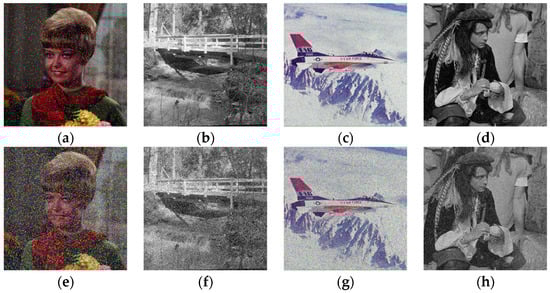 (a–d) Decryption image after adding 1% salt and pepper noise and (e–h) decryption image after adding 5% salt and pepper noise.