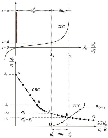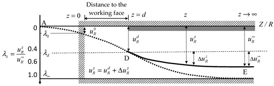 where R is the tunnel excavation radius, λ0 is a confinement loss at the working face (z = 0, point A in Figure 1), and can be given as: