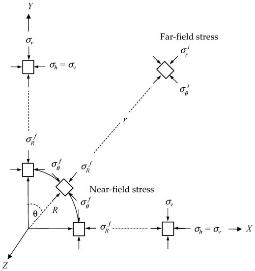 where , , and are the initial radial stress, the initial tangential stress, and the vertical stress.