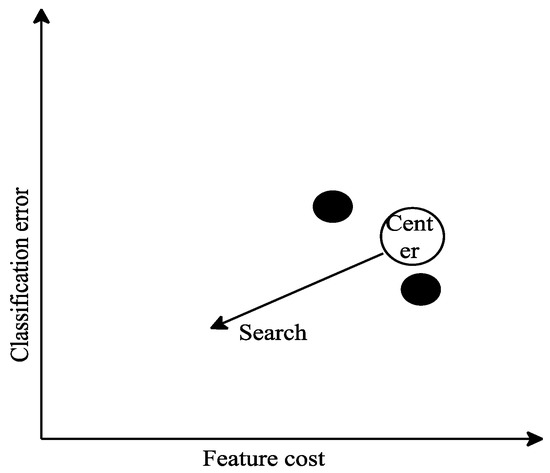 In feature selection, “0” means an unselected feature and “1” denotes a selected feature. Cost-sensitive feature selection has two optimization objectives, minimum classification error and feature cost. Therefore, it is formulated as a multi-objective problem, as shown in Equation (11):