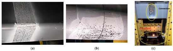 The secondary interest of the experiments is the joint separation of the two hollow sections. Due to bolt pretensioning, the hollow sections should not separate immediately after loading. This parameter represents a serviceability limit state criterion. To monitor the joint separation, the digital image correlation (DIC) technique was employed with the system provided by isiSys GmbH. Black dots on a white background were applied on the tensioned side of each specimen to obtain the speckle pattern,