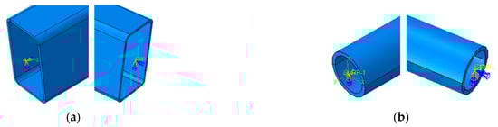 The end plate was connected to the RHS or CHS profile using the Tie constraint. Supplementary, contact interactions are necessary to be defined between the bolts and the end plate, and between the two hollow profiles which are in contact.
