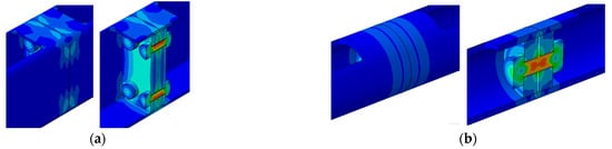 For the normal behavior, the Hard contact formulation was selected with the default direct method as a constraint enforcement method which attempts to strictly enforce a given pressure–overclosure behavior per constraint, without approximation or use of augmentation iterations. In addition, separation after contact was allowed.