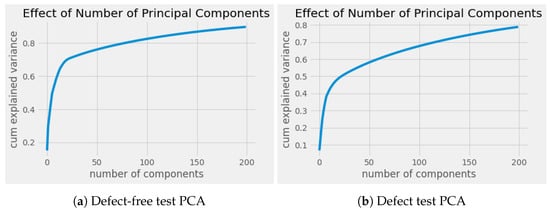 Originally, the PCA calculated on the training substrate image was used to create reconstructions for all the data used in the testing of the model. However, when the models were tested, all samples taken from any set other than the training set were predicted to contain defects. This indicated that the training PCA was not applicable to the other data sets. In response to this discovery, a PCA model is trained for each different set of data used in the testing process. The second substrate PCA explains about 90% of the total variance, while the defect PCA explains about 80%. The variance explained versus the number of components graphs for these additional PCA models are shown in Figure 5.
