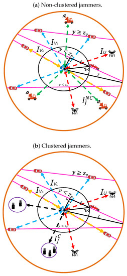 - Arif, M.; Kim, W.; Qureshi, S. Interference Characterization in Cellular-Assisted Vehicular Communications With Jamming. IEEE Access 2022, 10, 42469–42480. [Google Scholar] [CrossRef]