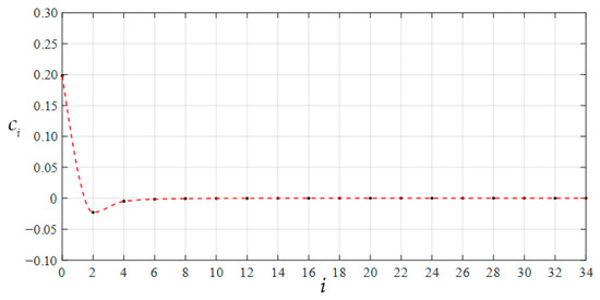 The recursion formulas for the coefficients ci and di in Equations (24) and (25) can be determined as follows. After substituting Equations (24) and (25) into Equations (18) and (20), the similar terms are combined to obtain the sums of coefficients of the x with the same powers. To ensure that Equations (18) and (20), after being substituted into Equations (24) and (25), still hold regardless of the value taken by the x in the interval [0, 1], all the sums of coefficients of the x with the same powers have to simultaneously be equal to zero. This gives rise to a system containing infinitely more equations with respect to the power-series coefficients ci and di. The recursion formulas for the coefficients ci and di can be determined by successively solving this infinite system of equations, as shown in Appendix A and Appendix B, where the coefficients ci and di are always equal to zero when i is odd, or are expressed as the polynomials of c0 and d0 when i is even.