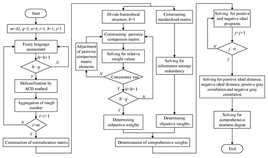 where and are the upper approximation and lower approximation of the Ch, , ; NU and NL are the number of objects included in the upper approximation and lower approximation of the Ch; and h = 1, 2, …, q, q is the number of decision makers [35].
