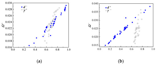 FACDG has many failure modes; if a single TOPSIS method is used here [35], there is a situation where the Euclidean distances are the same but the failure modes are different. According to the analysis, it can be seen that the larger the values of and , the larger the target layer and the larger the values of and , the larger the target layer . So, the dimensionless Euclidean distance and dimensionless gray correlations are all positive indicators. The dimensionless weight coefficients , , and are determined. The relationship of the target layer to and , and the target layer to and , are shown in Figure 6.