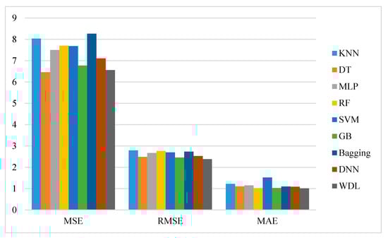 These metrics reflect the degree of difference between the estimated quantity and the estimated quantity, and they all range from [0, +∞]. When the predicted value is the same as the true value, the metrics are equal to 0. The larger the error, the larger the metrics. Lower values of these metrics indicate that the prediction results of the prediction model are closer to the true results.