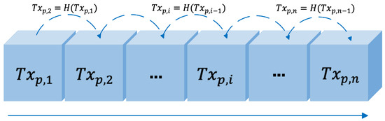 This method ensures that the origin of each transaction remains consistent. The bank signs the transaction with its private key. Subsequent minor transactions are connected to via the hash function. Throughout the transaction, the security of each minor transaction hinges on the challenge of calculating the hash inverse function [14]. The concept of the hash chain is illustrated in Figure 1.