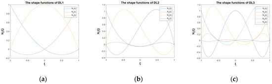 The shape functions of the dual interpolation elements: (a) DL1, (b) DL2, (c) DL3.