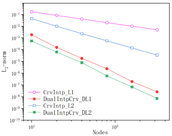 Comparison of accuracy between the dual interpolation curve and other methods (L2-norm).