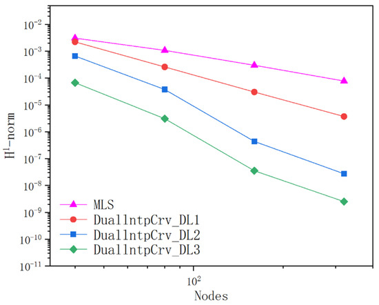 Comparison of accuracy between the dual interpolation curve and the MLS (H1-norm).