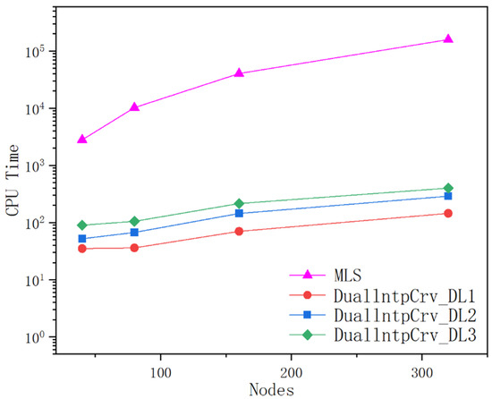Comparison of efficiency between the dual interpolation curve and the MLS.