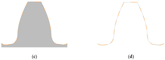 A comparison of the convergence and accuracy of the dual interpolation curve and the NURBS curve fitting method for geometry defeaturing is presented in Figure 20 and Figure 21. It is evident from Figure 21 that the NURBS curve cannot well handle the complex geometry models with non-smooth junctions when a higher-degree curve fitting process is performed. Since multiple fictitious nodes are assigned on the sharp corners, the dual interpolation curve can be well characterized by the boundary of the gear model (see Figure 22), which is a potential advantage of the proposed method for complex geometry repair and automatic mesh generation.