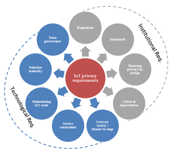 - Alhirabi, N.; Rana, O.; Perera, C. Security and privacy requirements for the internet of things: A survey. ACM Trans. Internet Things 2021, 2, 1–37. [Google Scholar] [CrossRef]