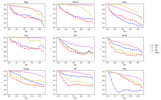 Analyzing Node Centrality Ranking under WT by Kendall’s Tau Coefficient