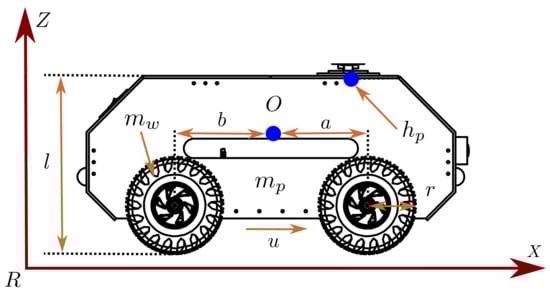 Figure 4 depicts a projection of the mobile robot’s XZ-plane presenting its modeling variables. Afterwards, Table 1 provides a thorough explanation of the variables that are represented within the four figures. Each variable is carefully described, providing the necessary context to fully interpret the figures and the mathematical model.