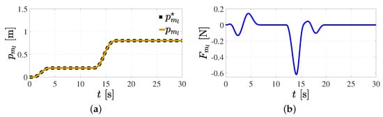 The linear and angular position reference trajectories planned for the mobile robot operation are respectively represented as and . Joint position reference trajectories desired for the manipulator robot operation are described as , with .