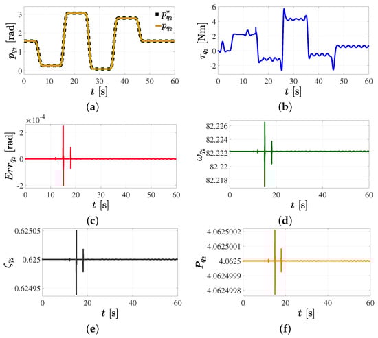 Improving a robotic system’s velocity and trajectory planning contributes to streamlined operations and production efficiency []. Nevertheless, achieving precise control and high velocity is one of many performance metrics for robotic systems, which depend on the specific application criteria of every sector. In addition, stability during operation is vital to maintaining the robot’s balance and prevent oscillations or disturbances that could compromise performance and safety, especially during tasks where the robot interacts with its environment or handles delicate objects [,,]. Ensuring stability in front of parameter uncertainty, unmodeled dynamics, and unknown disturbance torques allows the system to operate efficiently, minimizing the risk of accidents or disruptions in the manufacturing process []. Designing control systems to meet manufacturing applications’ demanding precision, velocity, and stability requirements is complex. The challenge lies in integrating these three essential aspects and addressing the issues encountered in manufacturing environments, including parametric uncertainty, unmodeled dynamics, and disturbance torques [,,]. Disturbances might introduce errors in motion-reference trajectory tracking. Deviations from desired trajectories and paths due to uncertainties in system parameters can negatively affect the overall performance of the robotic system as well.