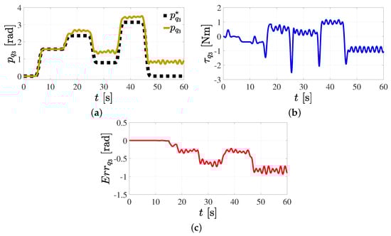 In Equation (30), are the tuning parameters. In this way, the stability assurance underpins the achievement of the desired control performance. It allows precise trajectory tracking, disturbance rejection, and error minimization, all of which are vital functions in mobile manipulation robotic systems.