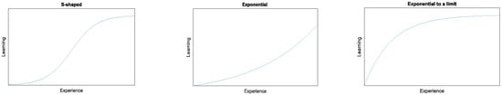 Learning curves of S-shaped, exponential, and exponential to a limit.