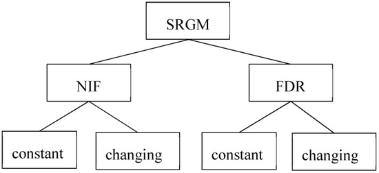 Over the past few decades, researchers have made significant advancements in developing software reliability growth models by exploring various ideas and approaches. One notable contribution in this field is the work of Pham and Nordmann, who introduced a general framework for constructing new SRGMs [5]. This framework has served as a foundation for interpreting several existing software reliability models. Within this framework, two concepts play vital roles in the construction of an SRGM: the expected number of initial faults (NIF) present in the software at the beginning of the testing phase and the fault detection rate (FDR), which represents the rate at which failures are detected over time. In the context of software debugging, both NIF and FDR can be treated as either constant or varying in a time-dependent manner. Figure 2 categorizes this group of SRGMs based on whether the NIF and FDR are considered constant or subject to change. This figure helps to provide a clearer understanding of the different models within this family.