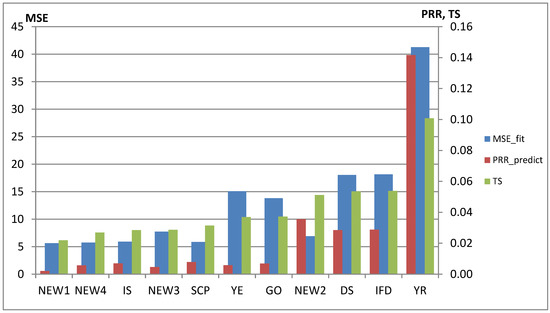 Based on the fitting ability (MSE_fit), the SCP model demonstrates the best fit, followed by the NEW1 model for the DS2 dataset. Regarding predictive power (PRR_predict), the NEW1 model exhibits the lowest prediction errors, while the SCP model ranks second. Regarding accuracy (TS), the NEW1 model is the second-most accurate model after SCP. The other proposed models exhibit satisfactory performance and outperform the DS, IFD, and YR models.