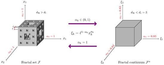 - Balankin, A.S. A continuum framework for mechanics of fractal materials I: From fractional space to continuum with fractal metric. Eur. J. Phys. 2015, 88, 90. [Google Scholar] [CrossRef]