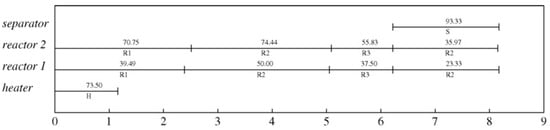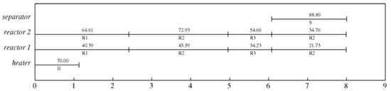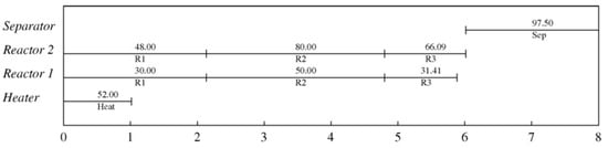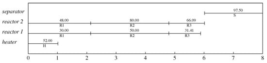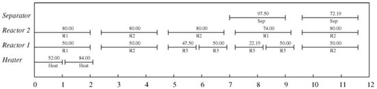 - Lin, X.; Floudas, C.A. Design, synthesis and scheduling of multipurpose batch plants via an effective continuous-time formulation. Comput. Chem. Eng. 2001, 25, 665–674. [Google Scholar] [CrossRef]