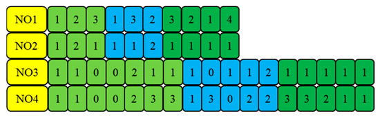The fourth layer is the processing sequence coding, which shows the order in which all job operations should be completed, and its total length is the same as the machine selection coding. The occurrence of a certain job number in the gene position indicates the processing sequence of that job, and the meaning of the number 0 in the coding is the same as that of the machine selection coding.