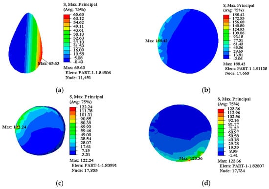 The numerical results of the maximum principal stress of the radius are shown in Figure 4.