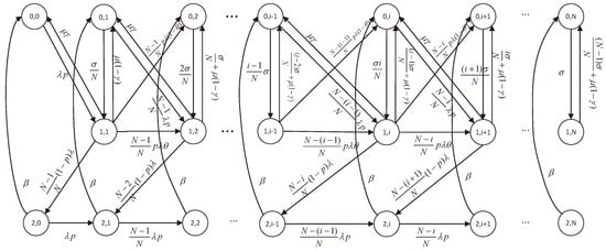For the purpose of a better interpretation of the proposed model, the state transition diagram of the corresponding model under exponential distribution has been given in Figure 1.