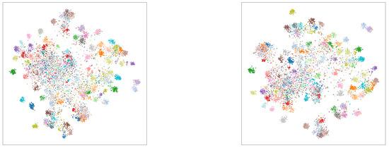 The T-SNE visualization of features for ProMatch without PC Loss (left) and ProMatch (right) on CIFAR-100.