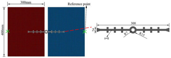 - Under tensile deformation, the deformation stress initially increases and then decreases with an increase in the aperture size. The maximum stress occurs when the aperture size is R = 3 mm, possibly due to the aperture size being too small, thus resulting in stress concentration during deformation. The deformation stress in all scenarios remains below the critical stress value.