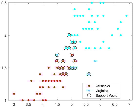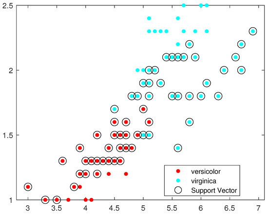 Figure 8 illustrate, respectively, the support vectors obtained using L1QP-SVM, L1QP-SVM, SMO-SVM, and Opt-RNN-SVM applied to the IRIS data. We note that (a) ISDA considers more than